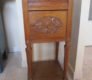 Chevet ancien sur pieds dessus en marbre 1 porte avec motif, intérieur en marbre 1 tiroir 1 plateau en bas Hauteur 78,5 cm