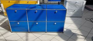 Vend un meuble de rangement usm haller, gris moyen, composé de 2 portes coulissantes et 2 portes abattantes. L1520 x P380 x H740 Son prix à retirer à Provins 77160 = 1900€
