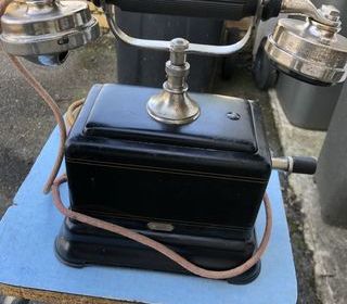 Ce téléphone est un modèle fonctionnant encore en " Batterie Locale " , car avec une grosse pile pour alimenter le poste. La magnéto servait à appeler l'opératrice, laquelle appel