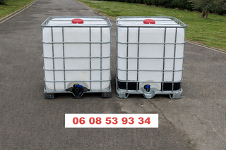 cuves 1000l - 1,20m x 1m haut 1,17 palette plastique ou métal 70€ possibilité de livraison avec un supplément de 0,40ct du km aller-retour