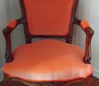 Fauteuil en cabriolet style Louis XV beau tissu velours rose
