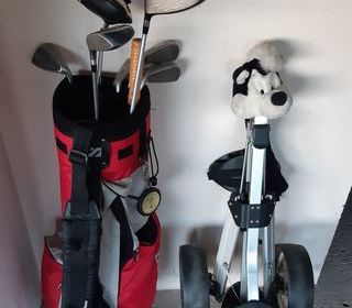 Sac et clubs de golf MIZUNO + cadddie 1/2 série femme droitière 2 bois MIZUNO 1 putter A peu servi A reprendre sur place
