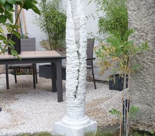 Sculpture réalisée en marbre de Carrare assemblé avec de la résine et de l'acier inoxydable. Hauteur 163 cm, Largeur 37 cm, Profondeur 37 cm. Sculpture aussi bien pour des es
