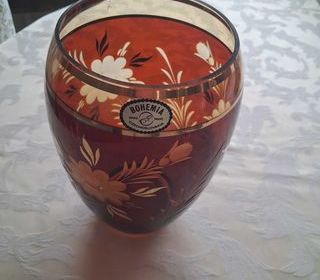 Vase de Bohême, fait main. 20 cm de hauteur et 11,5 cm de diamètre au niveau du haut