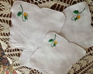 Lot de 6 napperons brodés main 20/20 plus deux grands : un de 43/43 l'autre de 43/32 blancs avec fleurs brodées main.
