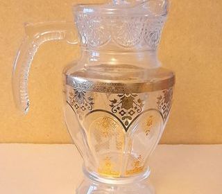 Sur Toulouse... Belle carafe "décorée" en verre épais - Neuve - jamais servie - hauteur de 24,5 cm x 13 cm de diamètre ( haut de la carafe ) + Couvercle pour fer