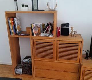 Très bon état. Le meuble est en deux parties. Il y a 2 portes et 2 tiroirs. Attention, il est assez lourd : il faut 2 personnes pour le porter. Il est à retirer sur place (Toul