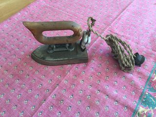 Ancien fer à repasser électrique de la marque Calor en acier, fonte et bois. Fer des années 1900 Il est Marqué sur la plaque : CALOR unis France 63 Fer de forme ogivale à l'