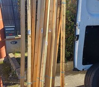 vend 10 paquets de 10 tasseaux en 2 mètres de long voir dimensions sur les photos. total:100 tasseaux de bois.