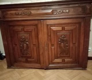 À l'occasion de notre vide-maison, vendons buffet en bois massif Peut être posé au sol ou suspendu au mur. Longueur 134 - Largeur 36 - Hauteur 99 (2 portes - 1 étagère) Très bo