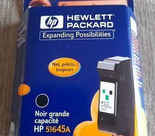 Cartouche jet d'encre noire, grande capacité (42 ml) de la marque originale HP, référence 51645A. Excellent état. Récupération sur place ou sur certains départements ou en