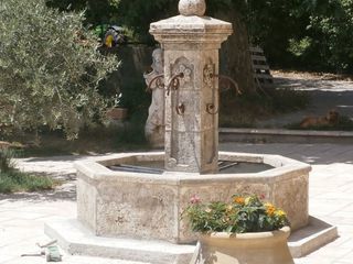 Fontaine centrale de village dimensions 1m70 de diamètre avec 4 sorties d eau et bec verseur en fer