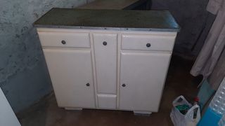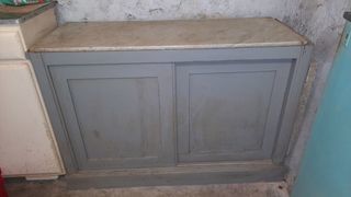 Meuble bas avec plan en marbre 2 portes coulissantes , 1 étagère Longueur 120 cm Profondeur 45 cm Hauteur 82 A prendre et payer sur place