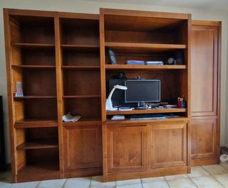 Cause déménagement vends 2 bibliothèques en merisier massif réalisées par un artisan ébéniste (facture). Style Louis-Philippe caractérisé par des lignes droites et des angles donn