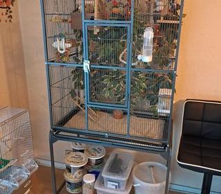 grande cage comme neuve avec barreau et mangeoire origine + abreuvoir + nourriture perruches d autre accessoires son disponible (plusieurs perchoirs, 2 mangeoire antigaspi, 2 nicho