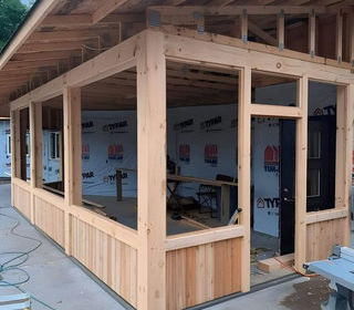 Vends ossature de véranda en bois Largeur =5m Profondeur= 4 m Hauteur = 3m 1 pente descendante Bois pin traité de catégorie 4 contre humidité et mauvaises intempéries Garan
