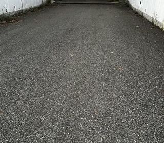 Garage en box fermé par une porte récente, dans une copropriété calme.