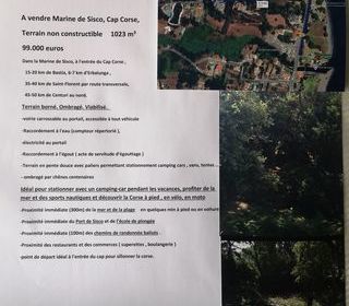 à vendre Marine de Sisco, Cap Corse, Terrain non constructible 99.000 euros. idéalement situé 15km de Bastia , 7 km d'Erbalunga,45 km de St Florent par la route transversale ,50
