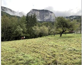 À vendre beau terrain constructible de 1 263 m², situé dans le secteur de Luzier à Sallanches (74700), Chemin de la Perrière, hameau calme et verdoyant. Vue sur les montagnes et à