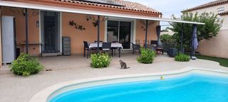 Jolie villa des annees 70, sur 4 faces, de 85 m2, sur un terrain de 800 m2, dans un charmant quartier situe a Pomerols (34). Elle a ete renovee en 2018, elle comprends : - salon