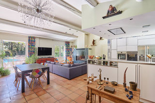 Grande villa familiale à Bouc-Bel-Air, à mi-chemin entre Aix et Marseille, avec accès aéroport à 20mn et gare TGV à 15 mn. La maison se compose d'une grande pièce à vivre de 80m2