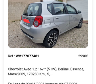 Chevrolet Kalos 1.4 16V Sport * (6 CV), Berline, Essence, Mai/2008, 128905 Km , 2 portes avec hayon, 3500 €. Equipements et options : ABS, Airbag conducteur, Airbag frontaux, Airb