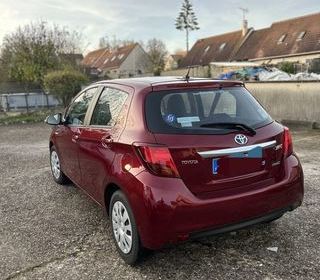 Toyota Yaris Hybride 100h TechnoLine (3 CV) *, excellent état général, kilométrage garanti avec entretiens réguliers, très belle couleur rouge allure. Equipements et options : Air