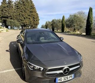 Mercedes Cla 180 essence,48000km bien équipé de couleur gris Montana intérieur cuir/tissu noir du 02/2022 etat proche du neuf