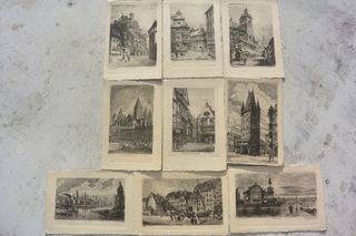 Mainz / Mayence - 9 eaux-fortes de SCHWENZER circa 1900 d'autres photos sur demande Anciennes eaux-fortes en format carte postale 14,4 x 9, 8 cm Différentes vues de la ville