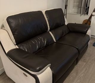 canapé 2 places (206x101x97) couleur bi ton crème chocolat . Acheter neuf en 2016 (facture disponible) . Boutons de chaque côté pour modifier la position relax. Canapé en excellent