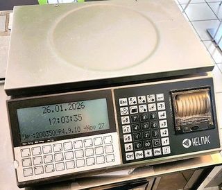 Caisse enregistreuse avec balance intégrée de marque HELMAC. Programmable vous pouvez saisir vos produits, libellés, prix, taux de TVA... Elle sort les totalisations journalières,