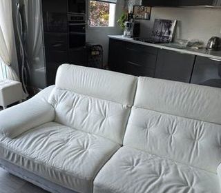 Canape 3 places en cuir blanc repose tête amovible 2.18 de long. 70 H. 106 PROFONDEUR
