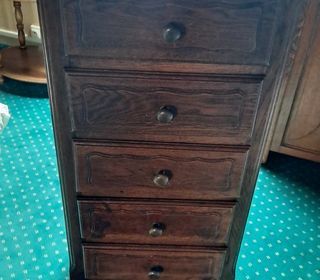 Chiffonnier bois 5 tiroirs 30x49 hauteur 102 cm.