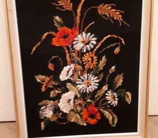 A VENDRE TAPISSERIE fait main TRES BON ETAT " Fleurs sauvages " Cadre doré largeur 38 X hauteur 50 cm NEGOCIABLE - A PRENDRE ET PAYER SUR PLACE