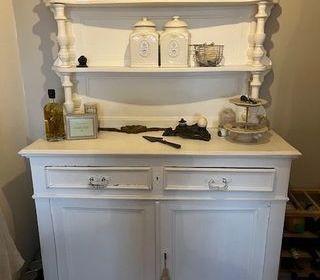 A vendre meuble St Hubert Excellent état, meuble patiné (voir photos). 2 tiroirs ? une étagère dans la partie basse. Prix demandé : 140€ Clé opérationnelle, mais boucle cassée.